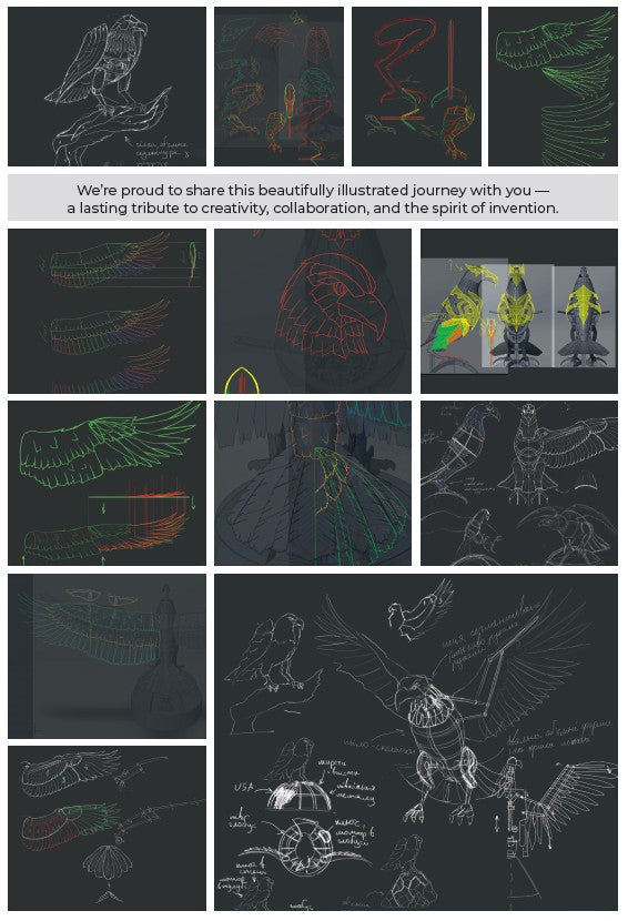 From the heart of steel and the spirit of creation comes the Great Eagle — a mechanical marvel known as Unity Wings. Forged by dreamers and engineers, this majestic creature rises to remind us of the strength we share, the vision we carry, and the skies we were all meant to soar.Inspired by the enduring legacy of the eagle — a majestic creature celebrated across cultures and generations. More than just a bird, it has long been a guardian of peace, a symbol of strength, and an emblem of unity.